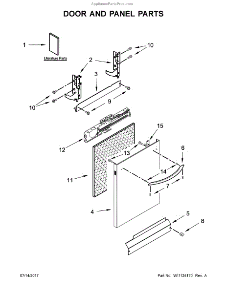 The Outer Door Panel is an OEM part for Whirlpool dishwashers. This sleek, durable panel forms the external face of the dishwasher door, contributing to the kitchen's overall look while shielding the dishwasher's operational parts from external damage.