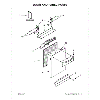 The Outer Door Panel is an OEM part for Whirlpool dishwashers. This sleek, durable panel forms the external face of the dishwasher door, contributing to the kitchen's overall look while shielding the dishwasher's operational parts from external damage.