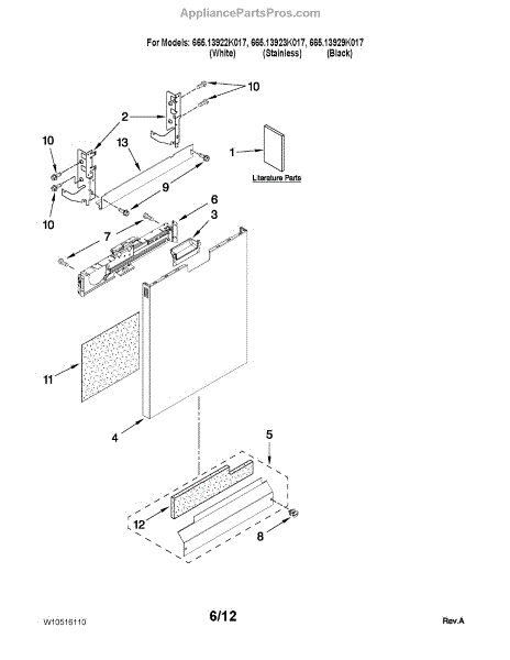 Parts for Kenmore 665.13923K017 (66513923K017, 665 13923K017): Door And Panel Parts