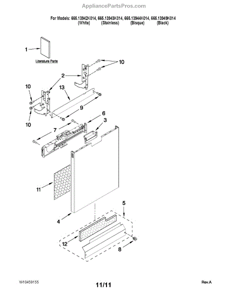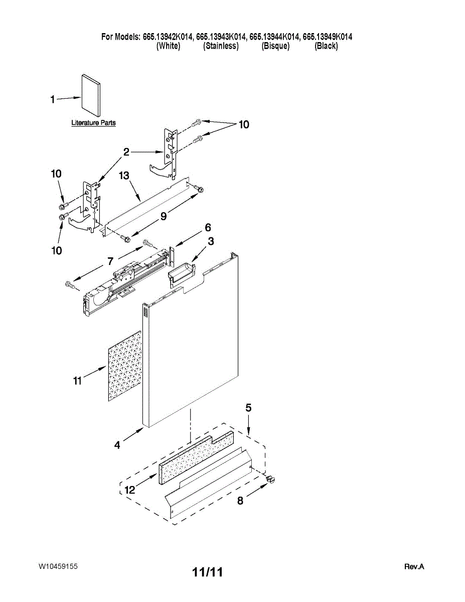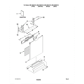 Control panel for dishwashers. Mounts on the front door to house buttons and display. Replace if cracked, faded, or damaged to restore appearance.
