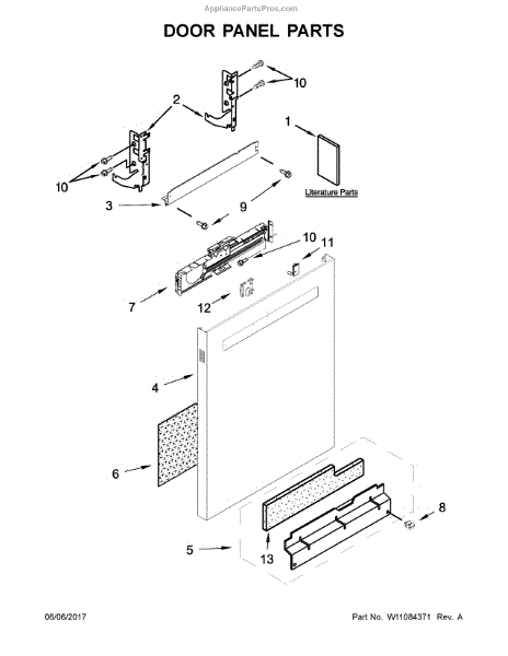 The Panel (BLK) is an OEM part for Whirlpool dishwashers. This black exterior panel is designed to provide a sleek and durable front surface for the dishwasher, enhancing its appearance and protecting internal components.