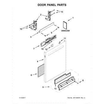 The Panel (BLK) is an OEM part for Whirlpool dishwashers. This black exterior panel is designed to provide a sleek and durable front surface for the dishwasher, enhancing its appearance and protecting internal components.