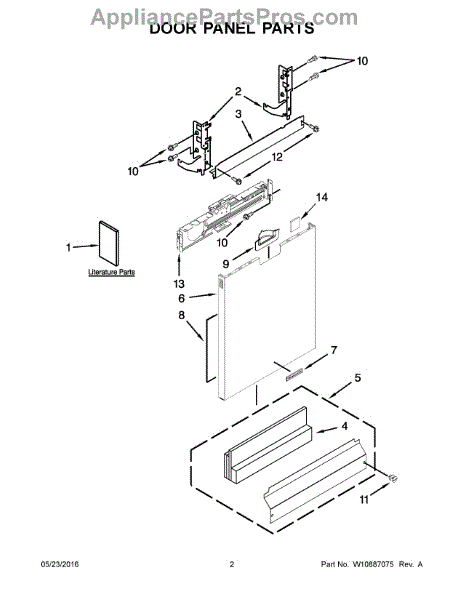 The Dishwasher Access Panel is an OEM part for Whirlpool dishwashers. This panel covers the lower front section of the dishwasher, providing a finished look while protecting internal components from debris and damage.