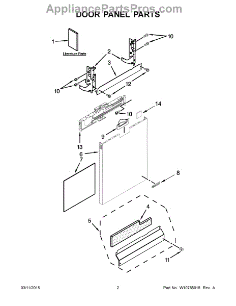 The Panel (BLK) is an OEM part for Whirlpool dishwashers. This black exterior panel is designed to provide a sleek and durable front surface for the dishwasher, enhancing its appearance and protecting internal components.