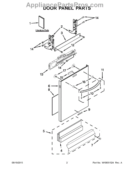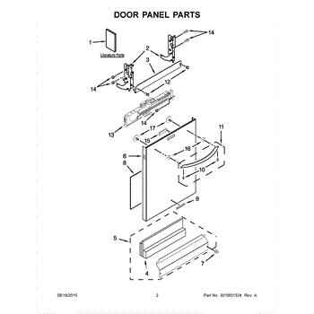 The Dishwasher Access Panel is an OEM part for Whirlpool dishwashers. This panel covers the lower front section of the dishwasher, providing a finished look while protecting internal components from debris and damage.