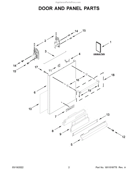 The Access Panel is an OEM part for Whirlpool dishwashers. Located along the bottom front of the dishwasher, it serves the dual purpose of protecting the unit's exterior from kicks and impacts while allowing technicians interior access.