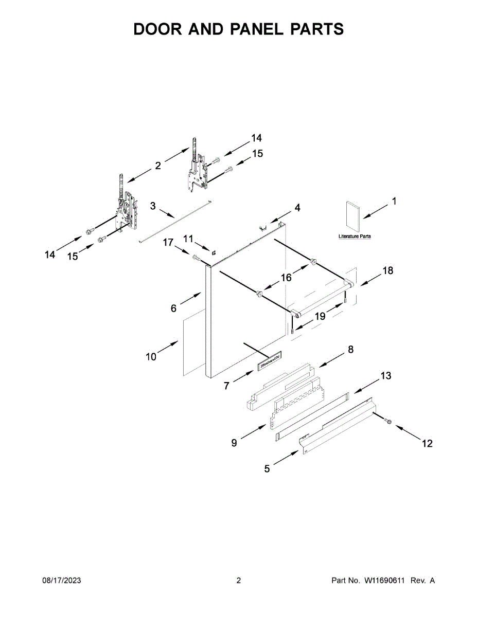 Parts for Kitchenaid KDTM804KPS2: Door And Panel Parts