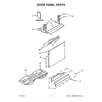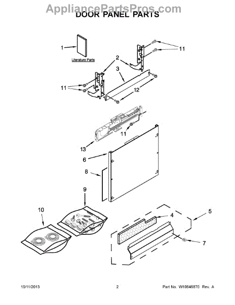 The Panel (BLK) is an OEM part for Whirlpool dishwashers. This black exterior panel is designed to provide a sleek and durable front surface for the dishwasher, enhancing its appearance and protecting internal components.