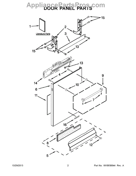 The Panel (BLK) is an OEM part for Whirlpool dishwashers. This black exterior panel is designed to provide a sleek and durable front surface for the dishwasher, enhancing its appearance and protecting internal components.