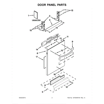 The Panel (BLK) is an OEM part for Whirlpool dishwashers. This black exterior panel is designed to provide a sleek and durable front surface for the dishwasher, enhancing its appearance and protecting internal components.