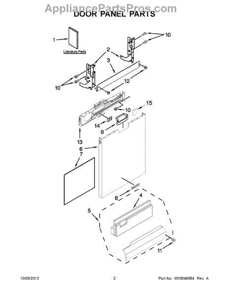The Dishwasher Access Panel is an OEM part for Whirlpool dishwashers. This panel covers the lower front section of the dishwasher, providing a finished look while protecting internal components from debris and damage.
