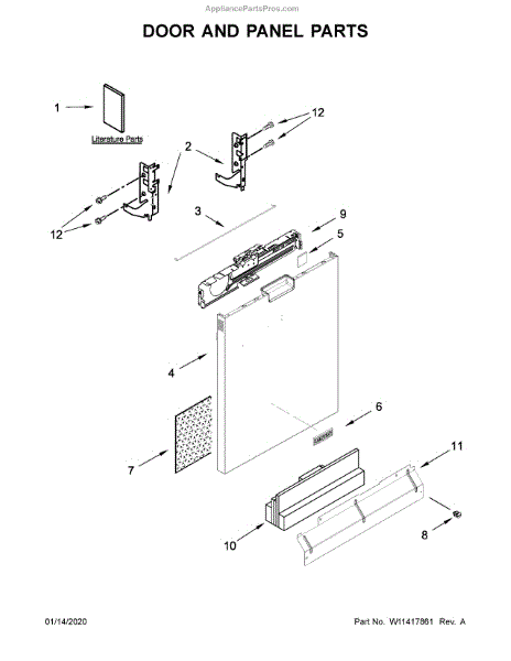 The Dishwasher Access Panel is an OEM part for Whirlpool dishwashers. This panel covers the lower front section of the dishwasher, providing a finished look while protecting internal components from debris and damage.