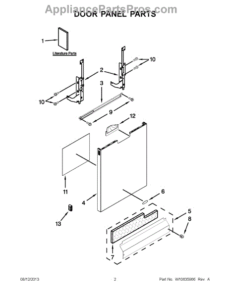 The Panel (BLK) is an OEM part for Whirlpool dishwashers. This black exterior panel is designed to provide a sleek and durable front surface for the dishwasher, enhancing its appearance and protecting internal components.