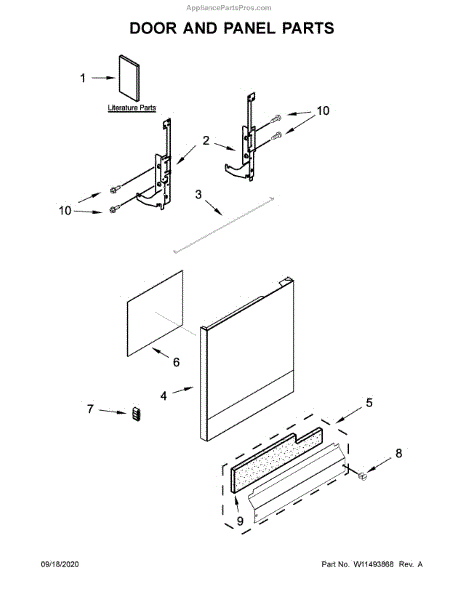 The Panel (BLK) is an OEM part for Whirlpool dishwashers. This black exterior panel is designed to provide a sleek and durable front surface for the dishwasher, enhancing its appearance and protecting internal components.