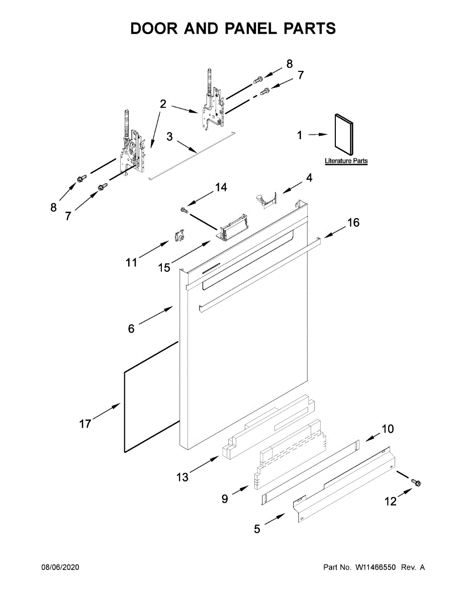 Parts for Whirlpool WDTA50SAKZ0: Door And Panel Parts