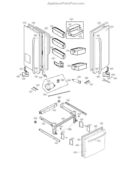 The Basket Assembly is an OEM component specifically designed for LG Door-in-Door refrigerators containing bottom-mounted crisper drawers. This integral assembly organizes stored items within the refrigerator doorway.