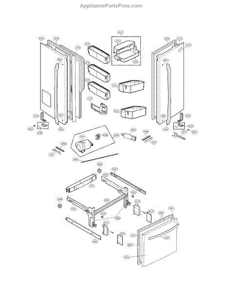 The Basket Assembly is an OEM component specifically designed for LG Door-in-Door refrigerators containing bottom-mounted crisper drawers. This integral assembly organizes stored items within the refrigerator doorway.