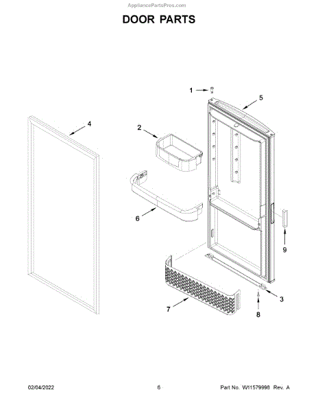 A replacement bin control lever that operates the door shelf latch so bins stay secure and release smoothly for access. Restores proper door bin engagement and helps prevent loose or stuck refrigerator door bins. What it does: