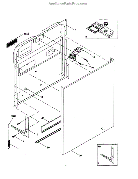 Parts for Amana DWA73AW-P1318613W: Door Parts
