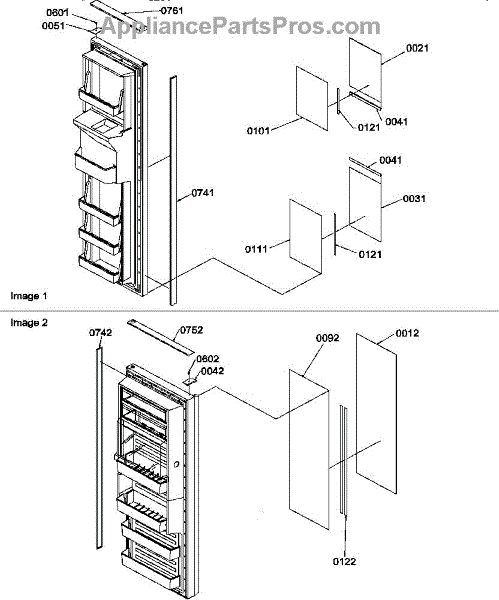 Parts for Amana SRDE25TPE-P1190314WE: Door Parts