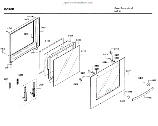 A replacement outer glass panel for Bosch appliances that restores the door's appearance and protects internal components from damage. Use this panel to repair visible chips, cracks, or shattered glass and return the door to serviceable condition. What it does: