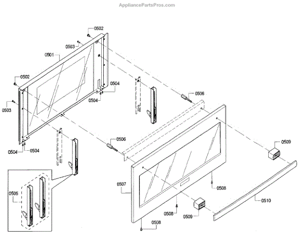 The oven door handle is responsible for safely grasping the heated door without risk of burns. Its ergonomic design provides a sturdy grip to smoothly manipulate the door back and forth while cooking or cleaning.