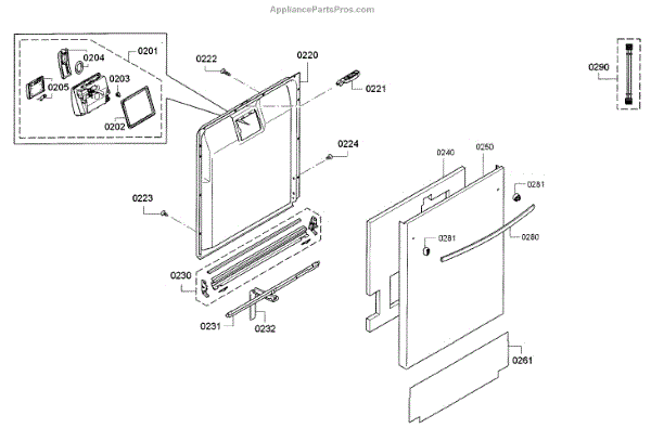 The Door Handle is an OEM part for Bosch dishwashers. It is installed on the outer edge of the dishwasher door and is used to open and close the door. The door handle is responsible for providing an easy and secure grip point to facilitate loading and unloading of dishes. It allows for controlled movement of the door through its range of motion. Symptoms of a bad door handle can include: