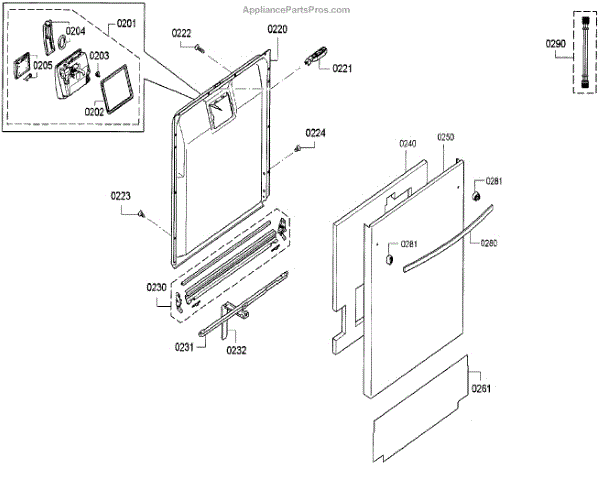 The Door Handle is an OEM part for Bosch dishwashers. It is installed on the outer edge of the dishwasher door and is used to open and close the door. The door handle is responsible for providing an easy and secure grip point to facilitate loading and unloading of dishes. It allows for controlled movement of the door through its range of motion. Symptoms of a bad door handle can include: