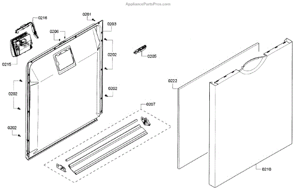The door-outer is responsible for the overall appearance and aesthetic of the dishwasher door. It gives the door its distinctive look and houses all internal mechanisms.