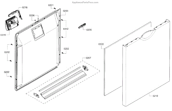The door-outer is responsible for the overall appearance and aesthetic of the dishwasher door. It gives the door its distinctive look and houses all internal mechanisms.