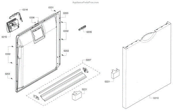 The Dishwasher Inner Door Panel is an OEM part for Bosch dishwashers. It is located inside the dishwasher door and protects internal components.