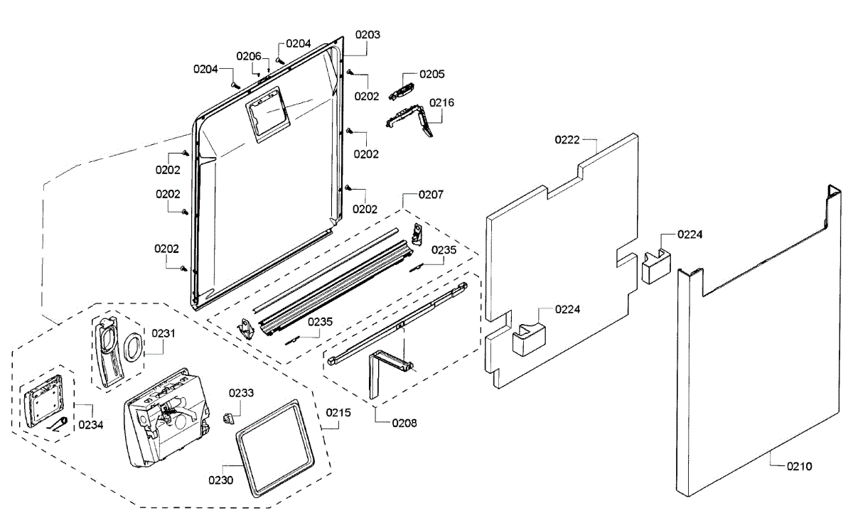 This inner door panel forms the inside surface of the dishwasher door. It supports key door components and helps seal the tub, keeping water and heat contained for reliable, quiet operation.
