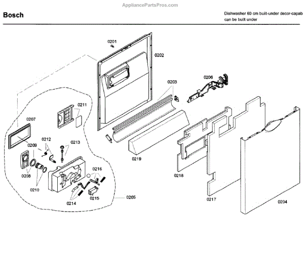 The Rinse Aid Door (with Gasket) is an OEM replacement part for Bosch dishwashers. It is responsible for covering and sealing the rinse aid dispenser. Problems with a rinse aid door can cause leaks during washing.