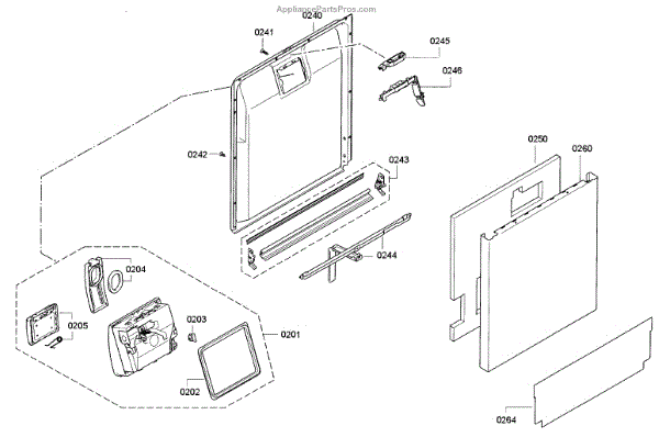 This inner door panel replaces a damaged or worn dishwasher door interior to restore proper door fit and help prevent leaks and rattling. It fits behind the outer door and supports the latch and internal components. What it does