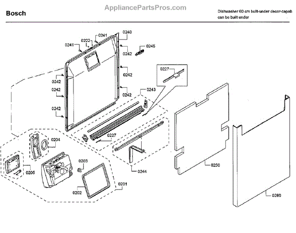 The Outer Door is an OEM part for Bosch dishwashers. It serves as the protective outer layer of your dishwasher, providing a clean and polished appearance while also ensuring the safety of the internal components.