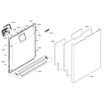 The Dishwasher Inner Door Panel is an OEM part for Bosch dishwashers. It is located inside the dishwasher door and protects internal components.