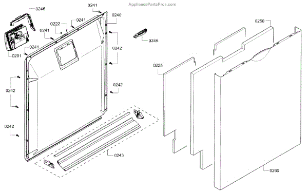 The Dishwasher Inner Door Panel is an OEM part for Bosch dishwashers. It is located inside the dishwasher door and protects internal components.
