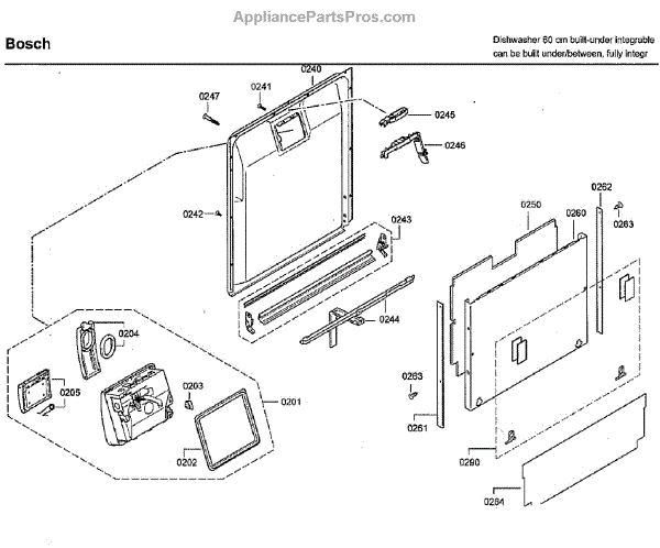 This inner door panel replaces a damaged or worn dishwasher door interior to restore proper door fit and help prevent leaks and rattling. It fits behind the outer door and supports the latch and internal components. What it does