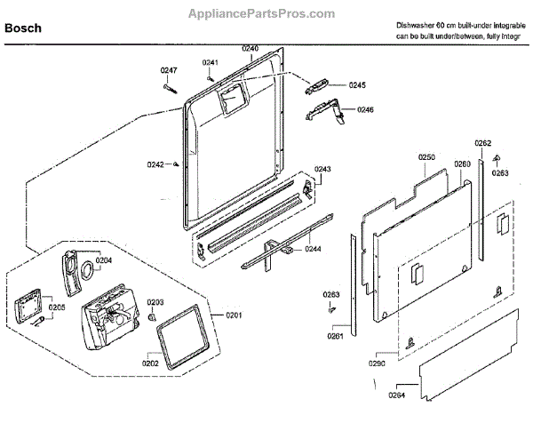 This inner door panel replaces a damaged or worn dishwasher door interior to restore proper door fit and help prevent leaks and rattling. It fits behind the outer door and supports the latch and internal components. What it does
