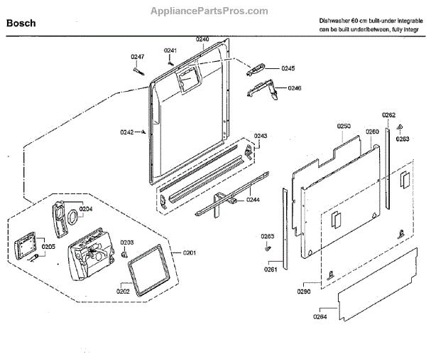 This inner door panel replaces a damaged or worn dishwasher door interior to restore proper door fit and help prevent leaks and rattling. It fits behind the outer door and supports the latch and internal components. What it does