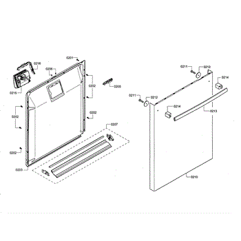 The Dishwasher Inner Door Panel is an OEM part for Bosch dishwashers. It is located inside the dishwasher door and protects internal components.