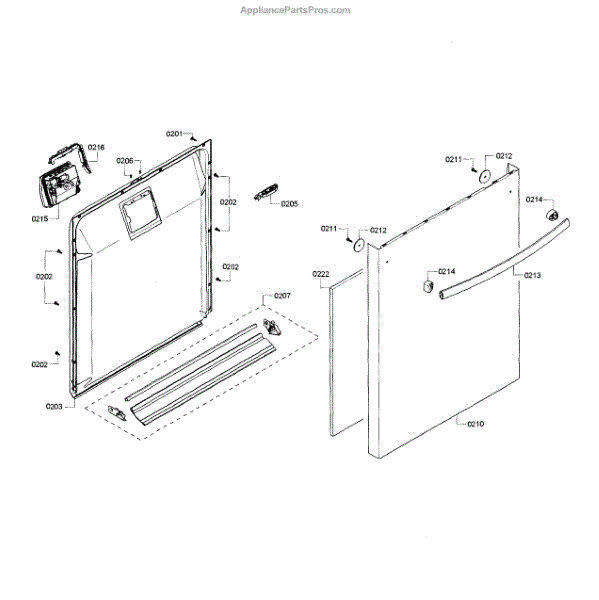 The Dishwasher Inner Door Panel is an OEM part for Bosch dishwashers. It is located inside the dishwasher door and protects internal components.