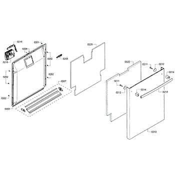 The Dishwasher Inner Door Panel is an OEM part for Bosch dishwashers. It is located inside the dishwasher door and protects internal components.