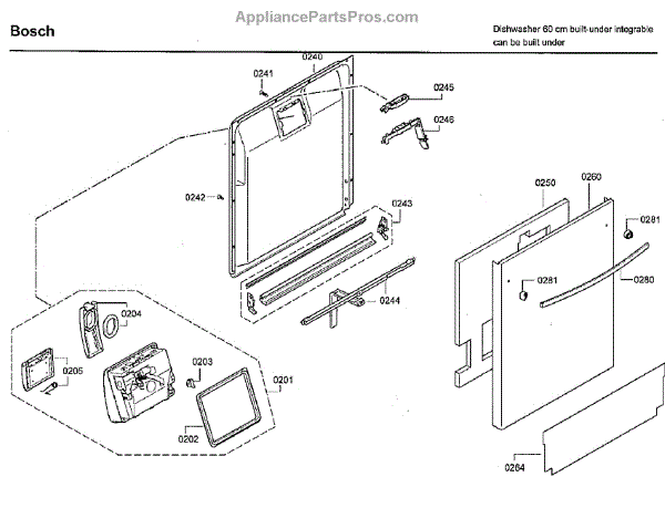 This inner door panel replaces a damaged or worn dishwasher door interior to restore proper door fit and help prevent leaks and rattling. It fits behind the outer door and supports the latch and internal components. What it does