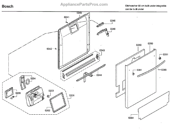This inner door panel replaces a damaged or worn dishwasher door interior to restore proper door fit and help prevent leaks and rattling. It fits behind the outer door and supports the latch and internal components. What it does