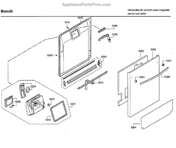 This inner door panel replaces a damaged or worn dishwasher door interior to restore proper door fit and help prevent leaks and rattling. It fits behind the outer door and supports the latch and internal components. What it does