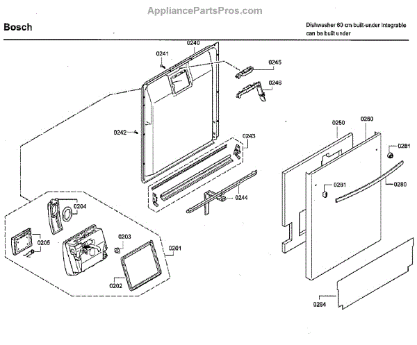 This inner door panel replaces a damaged or worn dishwasher door interior to restore proper door fit and help prevent leaks and rattling. It fits behind the outer door and supports the latch and internal components. What it does