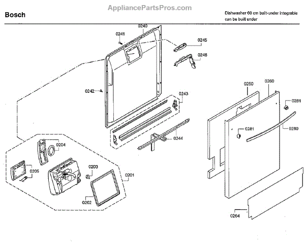 The Door Handle is an OEM part for Bosch dishwashers. It is installed on the outer edge of the dishwasher door and is used to open and close the door. The door handle is responsible for providing an easy and secure grip point to facilitate loading and unloading of dishes. It allows for controlled movement of the door through its range of motion. Symptoms of a bad door handle can include:
