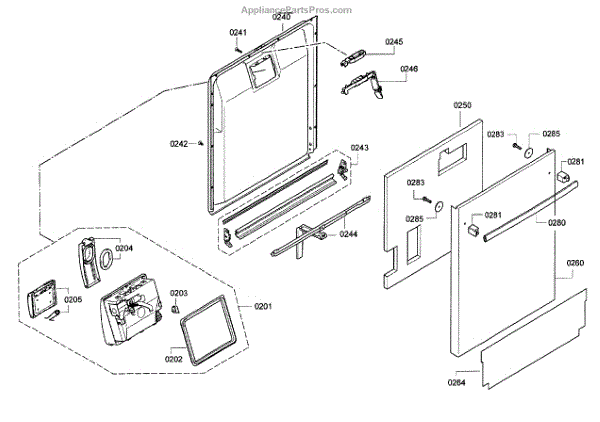 • Forms the interior surface of the dishwasher door and helps keep water inside the tub