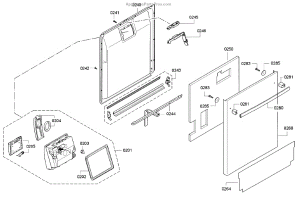• Forms the interior surface of the dishwasher door and helps keep water inside the tub